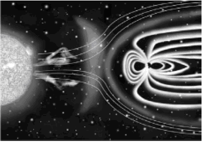 ภาพ 2.2 สนามแม่เหล็กโลกปกป้องโลกจากพายุสุริยะ